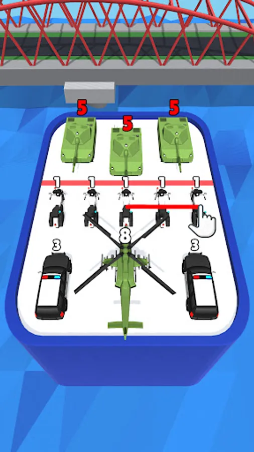 - Combining cars to merge them into higher vehicle forms: Motorbike, four-wheels, trucks, Firetruck, Tank, helicopter