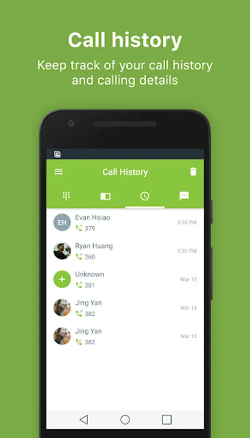 - Complete call history at your finger tip including any missed calls