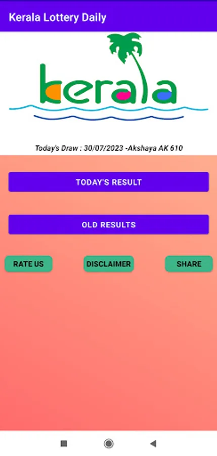 This application provides draw result for Kerala Lottery 🎉🍀 which is held everyday at 3.00 pm. It also provides old draw results which can be viewed from the old result section. Pdf view of the original result is also available.