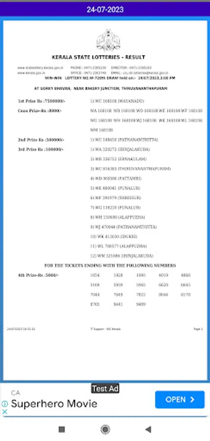 Disclaimer – This app doesn't have direct connection with Kerala Lottery Department. Lottery winners are requested to verify the result with government gadget. This result is published only for immediate knowledge of buyers and sellers regardless of accuracy.