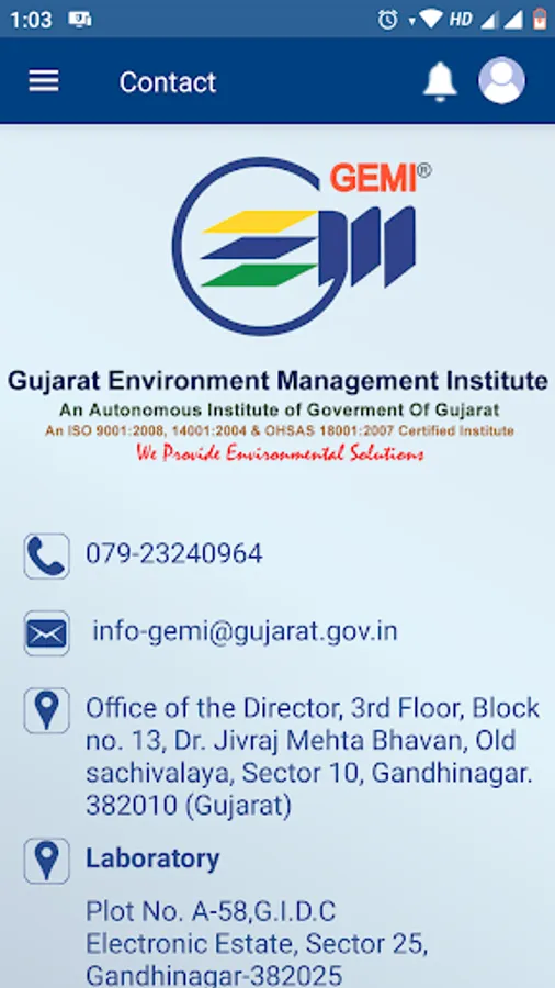 Set up with an objective of preserving and protecting the environment of Gujarat, the Institute provides environmental solutions to all concerned. Primary role of GEMI is to focus on Research & Development in the areas of technologies related with Environmental Management as well as evolution of Environmental processes and technologies and render advise on policies that are in consonance with a sustainable and healthy environment.