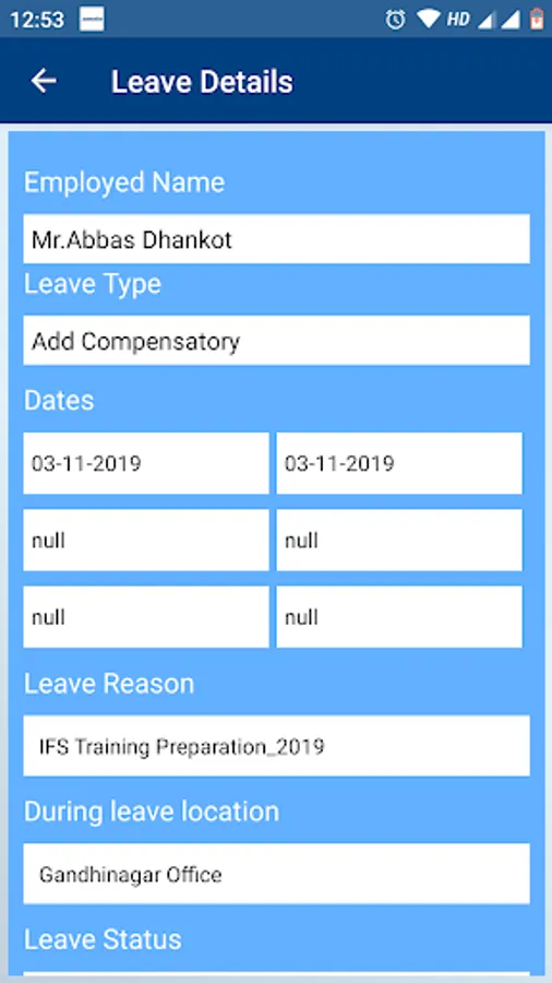 The Gujarat Environment Management Institute (GEMI) is an Autonomous Institute under the aegis of the Forests & Environment Department, Govt. of Gujarat. GEMI, engaged in carrying out various projects and research activities pertaining to environment and its management in the State of Gujarat through scientific and technical pursuits. And this institute having 36 Employees for various wing like Engineering wing, Laboratory wing, IT wing, Administrative wing, Account wing. In this regards this institute has developed the leave application for maintain the leave record of all employee and reduce the paper work.