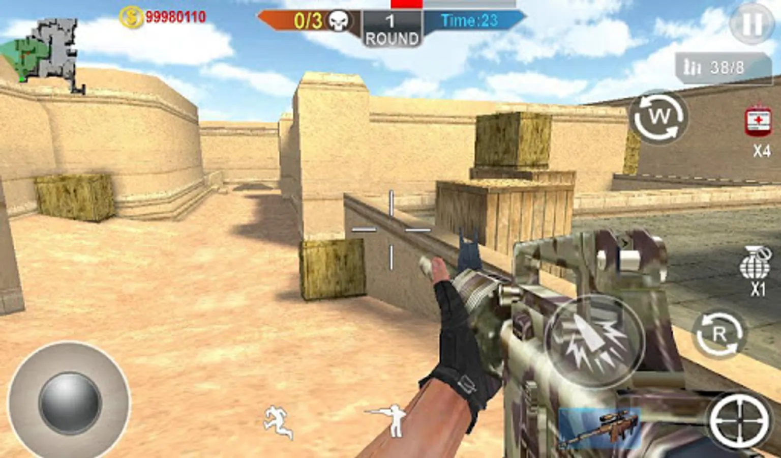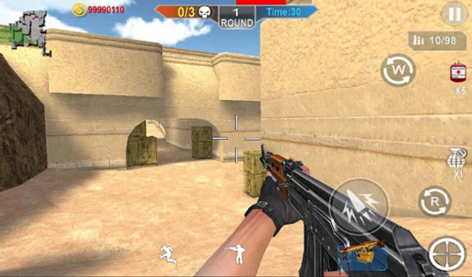* Perfect interface: FPS game, full-finger touch simple operation, 3D realistic visuals, powerful sound, the real shooting feeling!