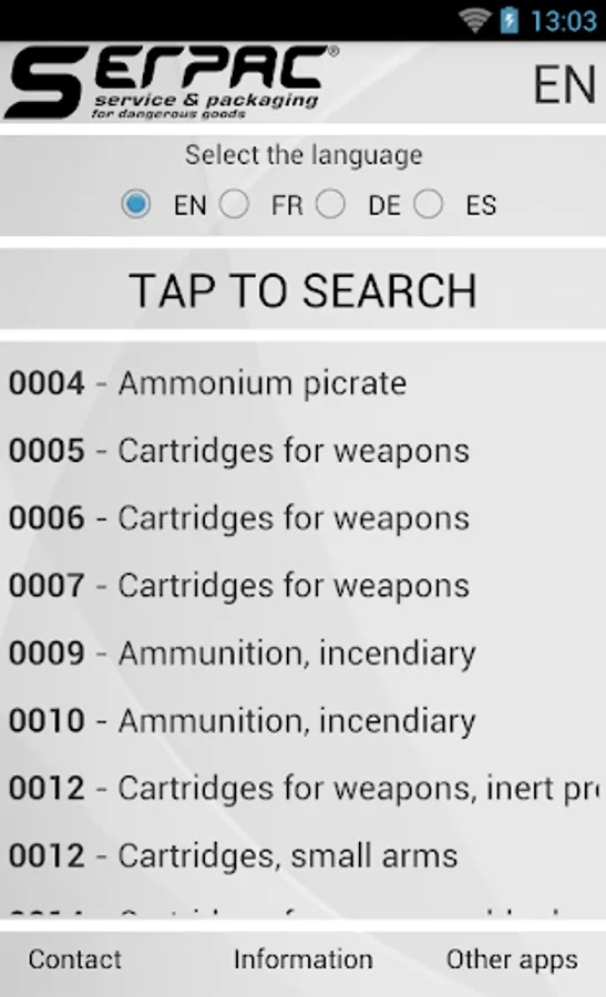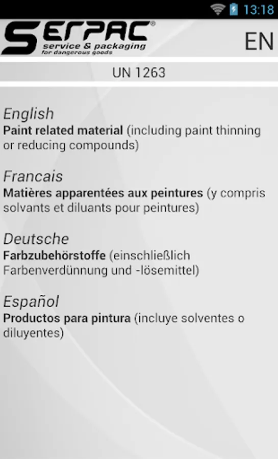 UN translate is an application that will allow you to display in 4 different languages all UN Number and the corresponding Proper Shipping Names (PSN) as show in ICAO/IATA Regulations (for transport of dangerous goods by air). If you know the UN Number of your goods but you don’t know the PSN you can write the UN Number and the app will display the corresponding PSN. At the same time, if you know the PSN of your goods but you don’t know the UN Number you can write the PSN and the app will display the corresponding UN Number.