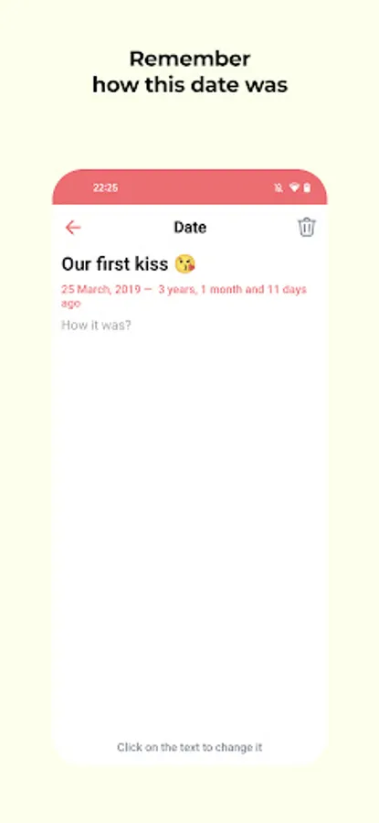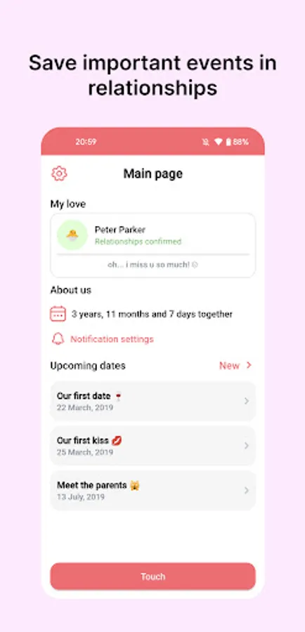 Flexible setting of anniversary notifications, so you can receive a notification about overcoming the relationship period every: 1/3/6/12 months.
