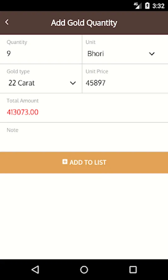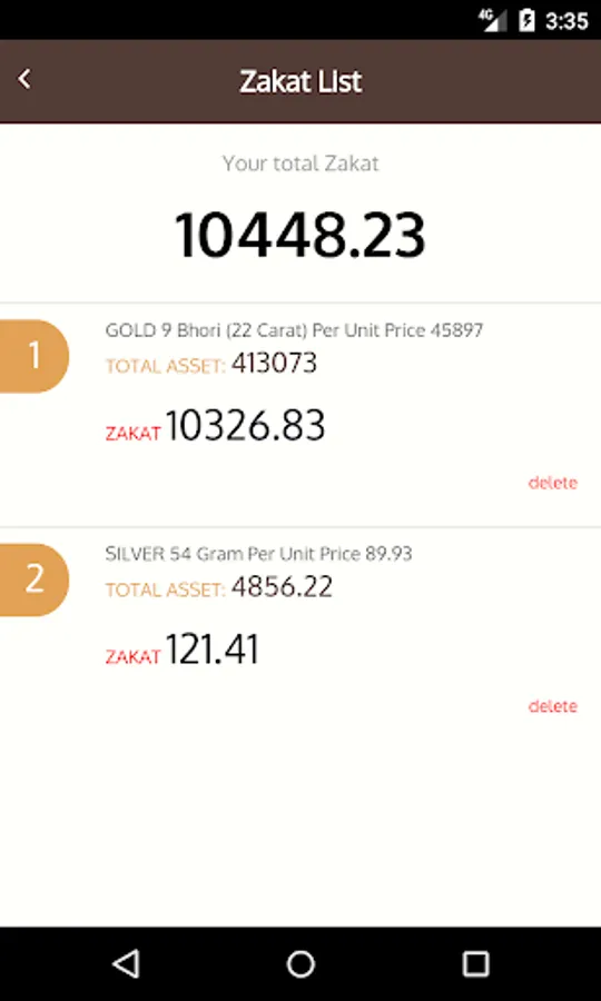 Add you assets through the icons in the app and the app will show you zakat amount for each kind of assets.