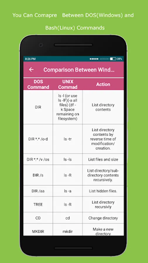 - Comparison Between DOS(Windows) and bash(Linux) Commands->Find out the Comparison between most useful windows and Linux commands.