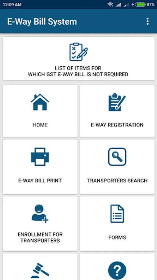 -Forms->All kinds Of which is required for E-Way Bill System are available in app.