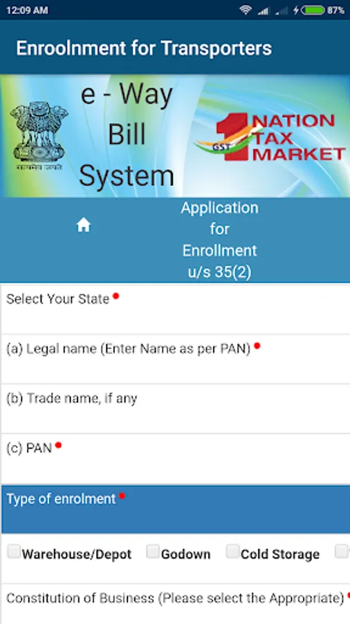 Unregistered Persons/ Transporters can enroll in the e-Way Bill System by providing their PAN and Aadhaar.