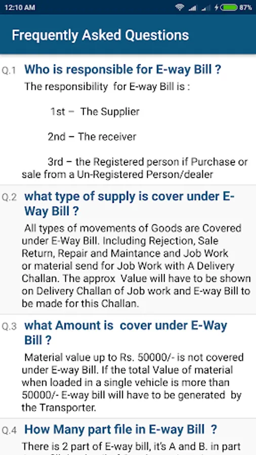 -FAQS->You Can Find answers of most frequently asked question about GST E-Way Bill System here.