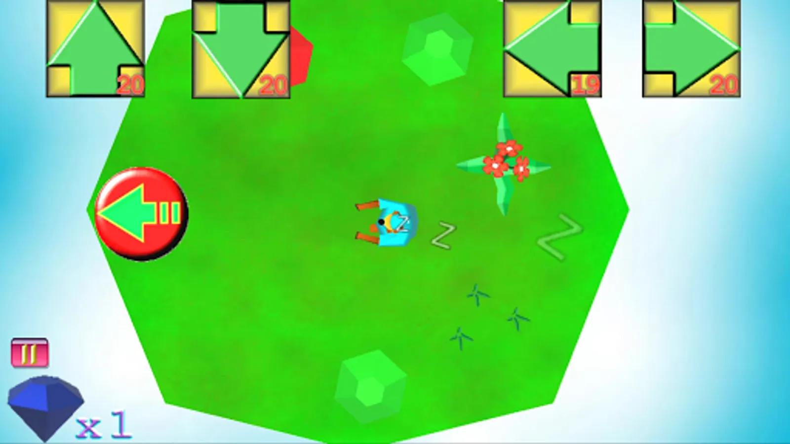 Help guide this sleepwalking bear around obstacles using arrows that will move him in different directions. Make sure not to walk into a rock, a wall, or even spikes. Determine the quickest path to collecting enough gems to unlock the gate and advance to the next challenging level.