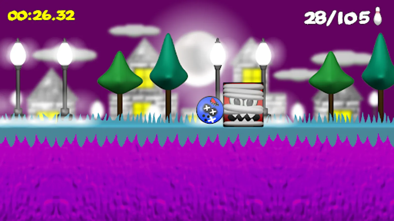 How fast can you knock all the bowling pins to win? “Bowlmania” is an exciting, action adventure, bowling game with a unique twist that is simple, yet competitive and fun! You control a bowling ball by rolling, jumping, and knocking all the pins in each level while being timed for it. Be careful, the bowling ball has feelings and emotions, so make sure you take good care of it by safely making your way around obstacles and enemies.