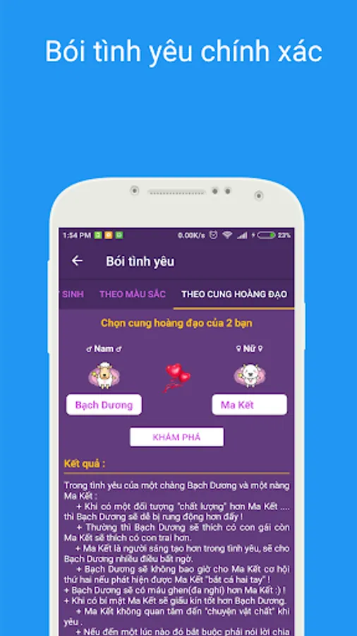 Horoscope Huyen Cac is a free Horoscope application that helps you see the 2023 horoscope, fortune-telling, look up the lunisolar calendar, see the daily horoscope simple and fast.