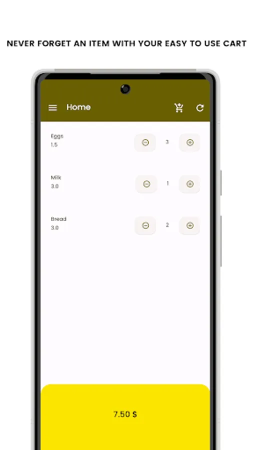 The Cart Calculator app features a simple and intuitive interface that allows you to add and manage items quickly and easily. It also provides a detailed list of your purchases, including the name, price, and quantity of each item. You can customize the list according to your preferences, and the app will calculate the total cost for you automatically.