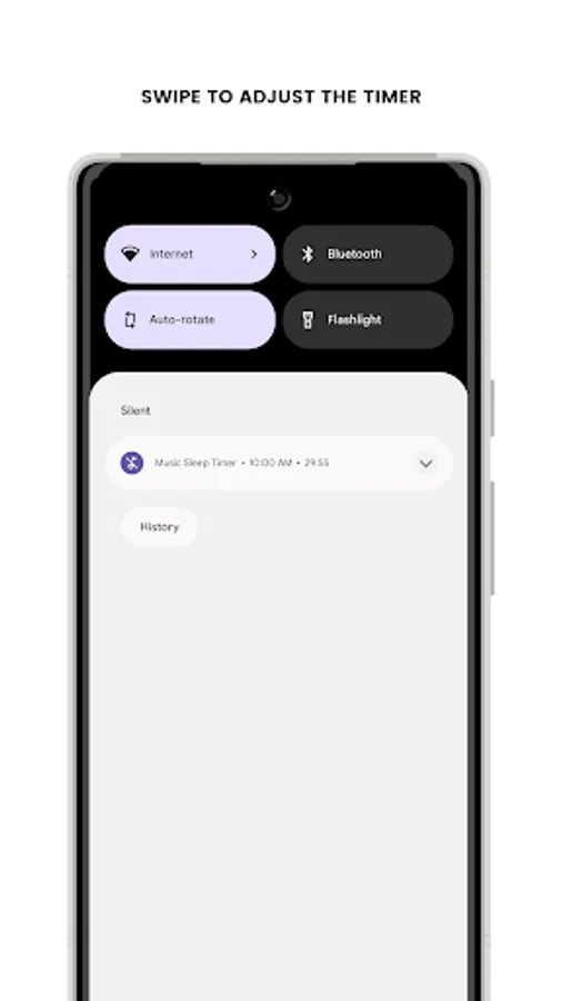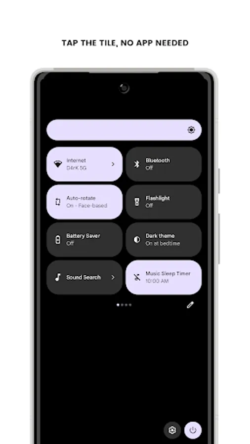 With Music Sleep Timer Plus, it's easy to set a timer to turn off your audio playback at a specific time. All you need to do is tap the notification tile, select your desired time, and start the countdown. The timer will run in the background, and you can continue to use your phone or other apps as usual. When the timer ends, audio playback will be stopped automatically, ensuring that your phone is conserving energy and you can get a peaceful night's sleep.