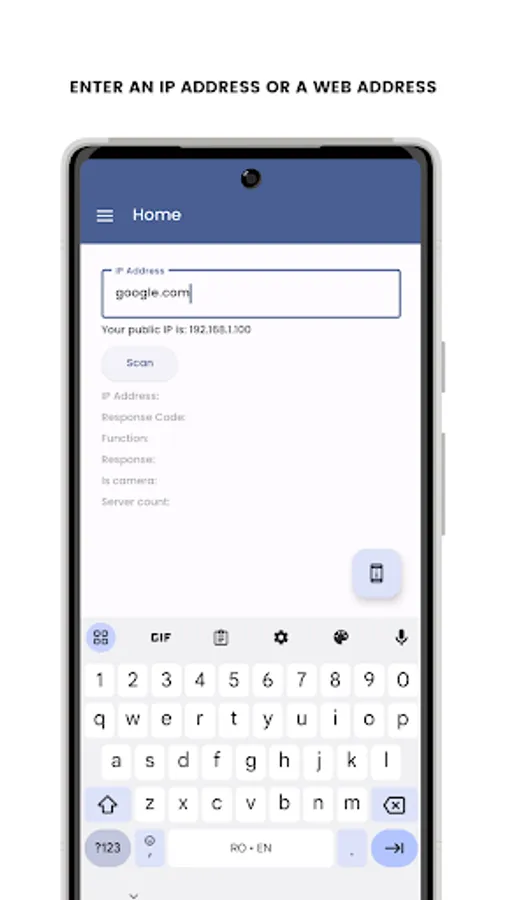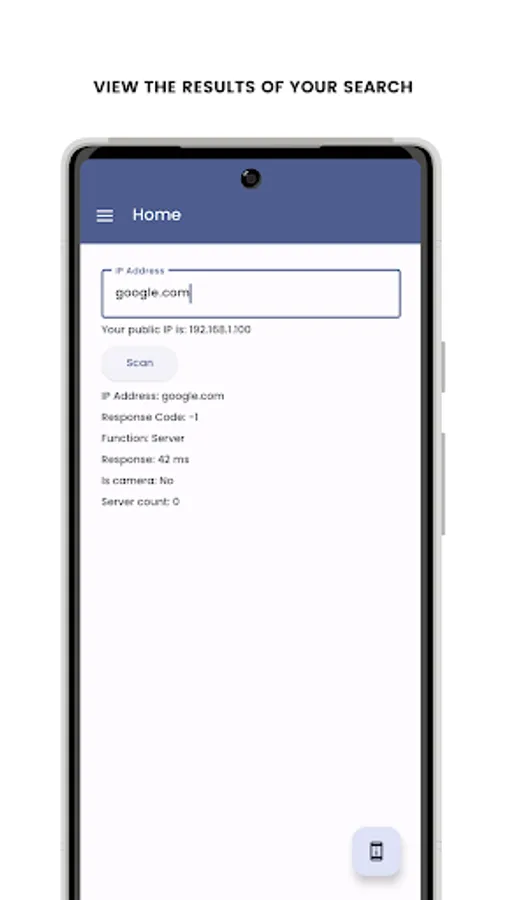 To use Net Probe, simply enter the IP address or website address in the text field and click the "Scan" button. The app will then scan the address and display the results in a list.