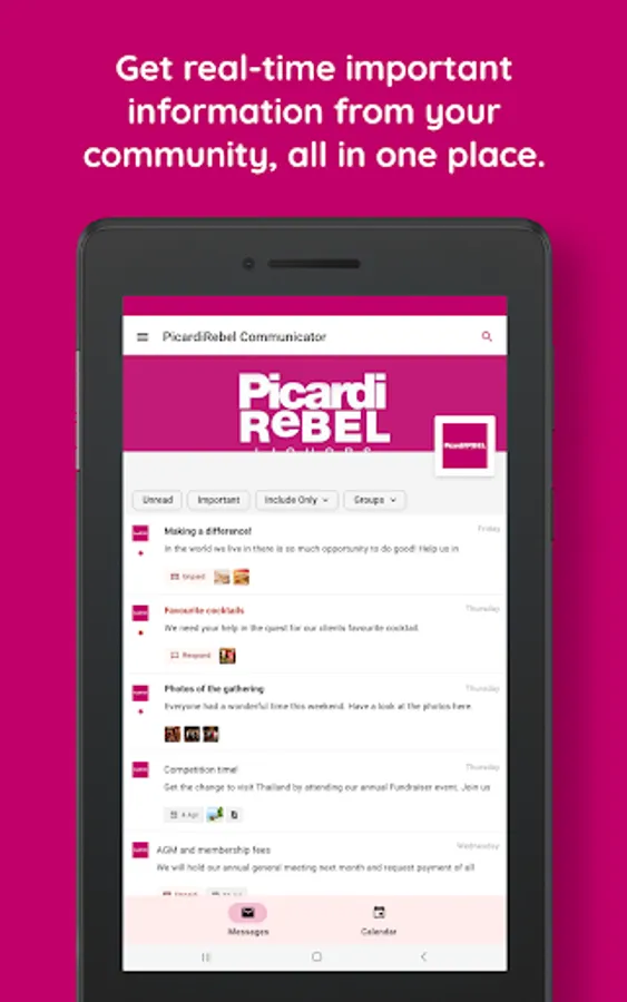 The PicardiRebel Communicator will give you News and Calendar events, a Photo Gallery, Contact Lists and links to useful resources. There are also critical alerts for that news that just can’t wait.