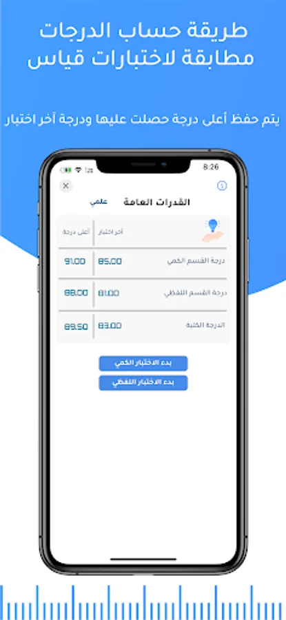 • The number of questions presented in each test type and the method of calculating the scores are identical to measurement tests