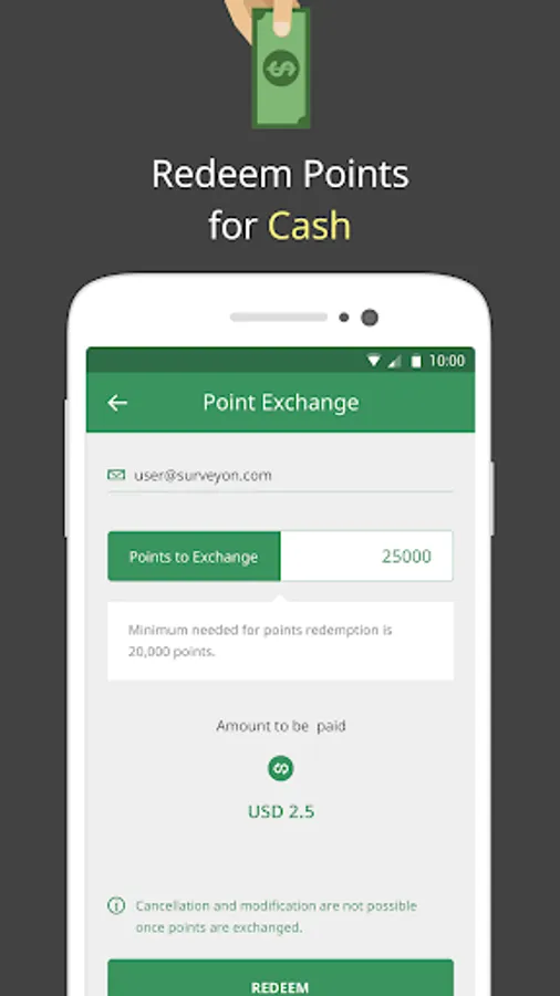 Once you receive points from answering the surveys, you can exchange them within the app.