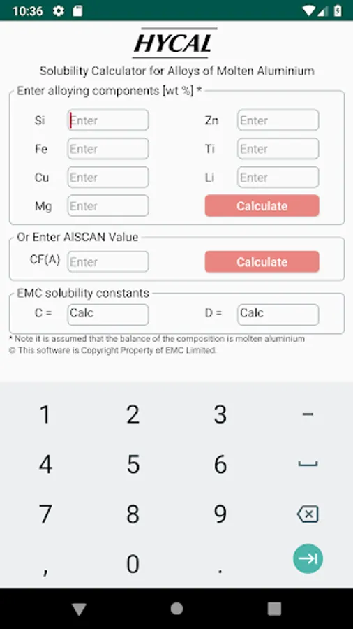 HYCAL Solubility Calculator for Alloys of Molten Aluminium