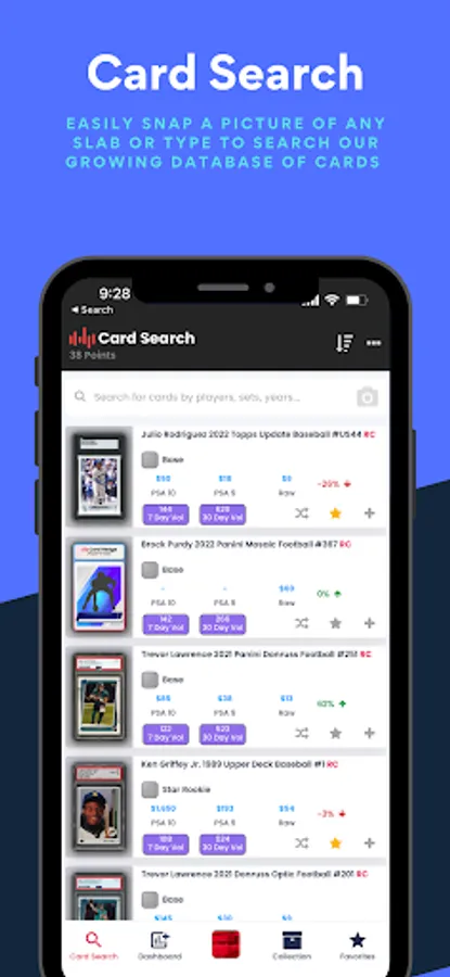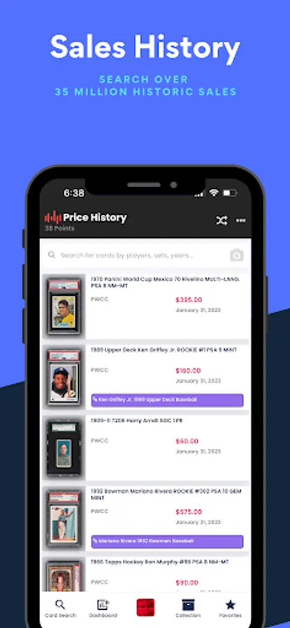Track the value of your collection, identify cards that are worth the most, and make informed decisions when buying or selling with our user-friendly app. It's a one-stop-shop for all your sports card pricing needs, now available at your fingertips.