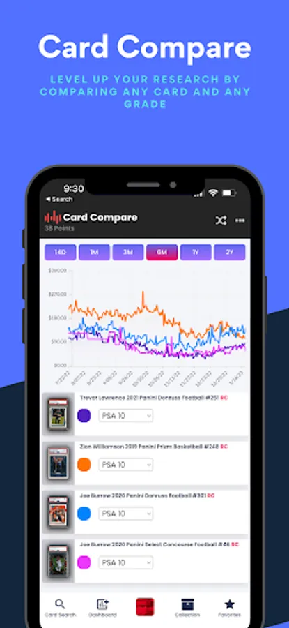 • Powerful card compare tool allowing you to easily compare across cards and grades