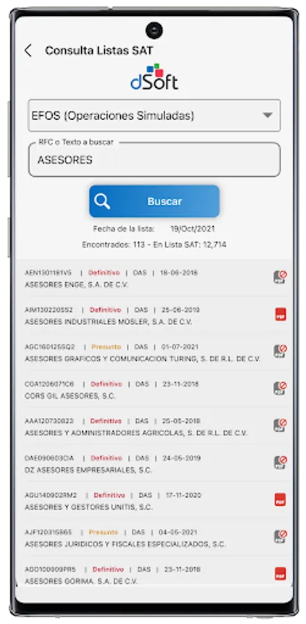 With eListasNegras you can find RFCs from suppliers and customers on SAT blacklists.