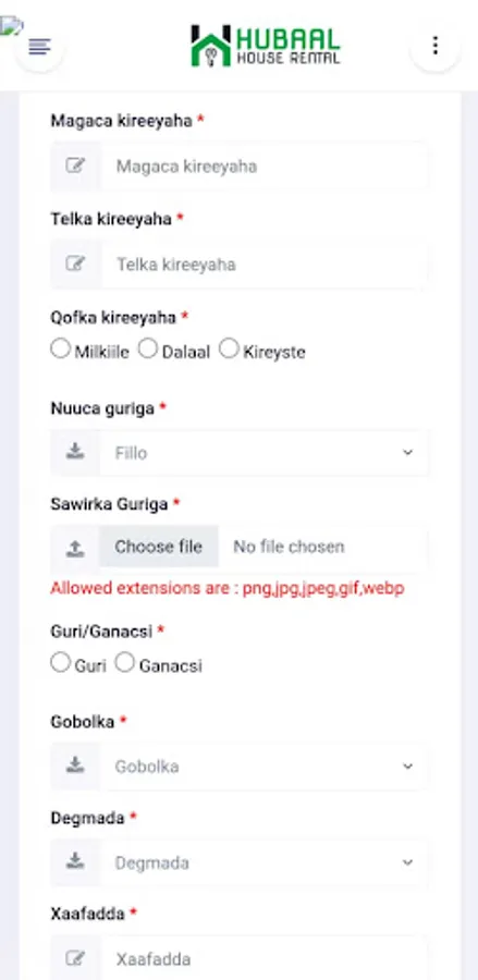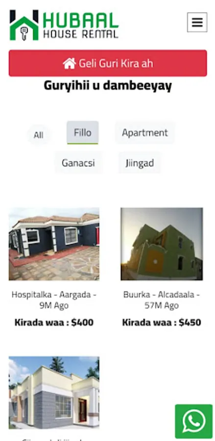 Hubaal Rent App waxaad ka heleysaa guryo kiro ah