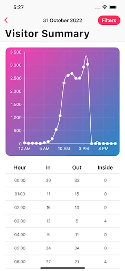 An Android application reports people counting data for users who use Intensive Watch People Counting solution. This application makes it easy to understand how many people are in an area at anytime where the internet connectivity is available.