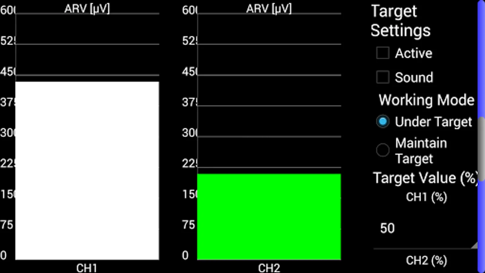 4 channels EMG Biofeedback application to show the ARV (Average Rectified Value) of the EMG signals with BARS.