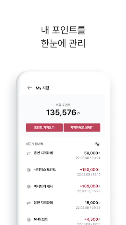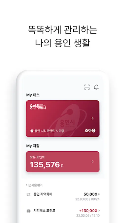 You can collect points (Woori WON Honey Money, NH Points, City Pass Points, Money Tree Cash) scattered in various places and convert them into local currency (Yongin Y Pay).