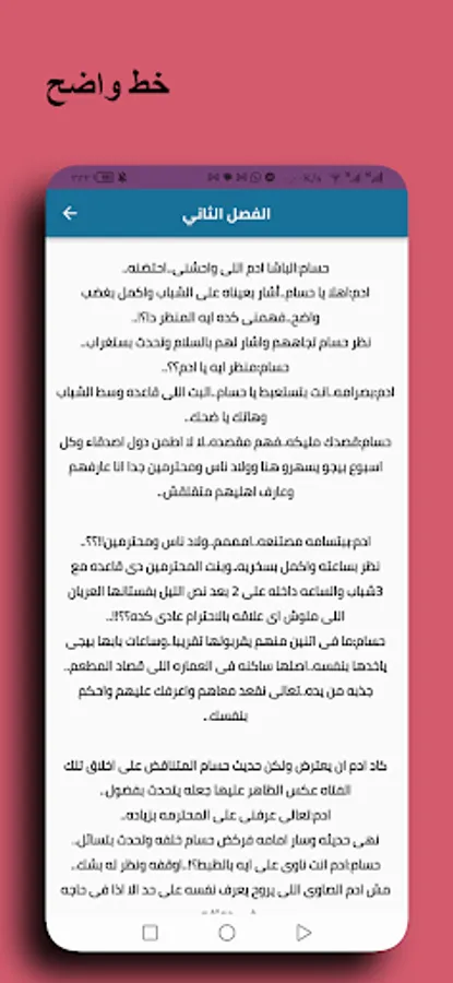This application is characterized as easy to browse and read. You can also share the application with friends. Easy and comfortable reading and font. Easy navigation between the chapters of the narrator.