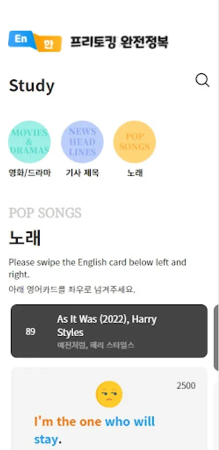 Using movies, dramas, songs, news headline articles, etc., native speakers provide sentences in English and Korean pairs, focusing on expressions frequently used in daily life.