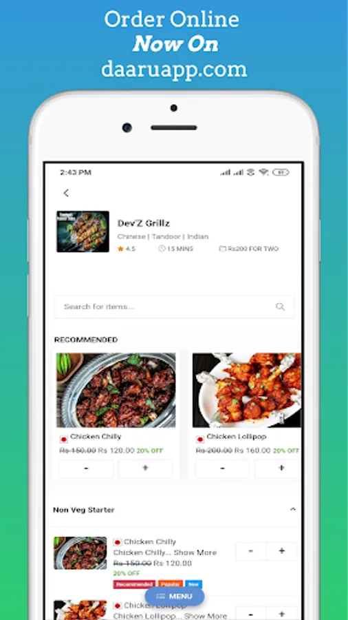 Daaru app (Smart Delivery) will Deliver you Delicious food and drink Around you Online. We make ordering food simple, quick and accessible via mobile devices. Finding a Restaurant nearby and ordering your favorite meal is as easy as possible.