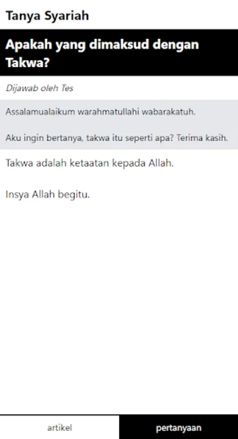 "Tanya Syariah" is an Islamic religious consultation application that provides solutions for users who have questions about Islamic teachings. This application allows users to consult with ustadz who are competent and experienced in their fields. They are ready to help and answer any questions that are entered by users with solutions that are in accordance with Islamic teachings. "Ask Sharia" is very helpful for those who want to know more about Islamic teachings and deepen their religious knowledge. With this application, users can obtain accurate and reliable information from trusted ustadz.