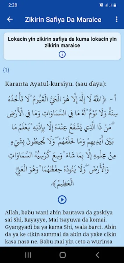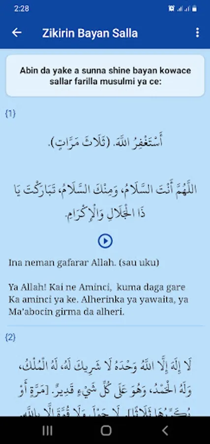 2) Audio domin sauraron addu'a, ba tare da an kunna data ba