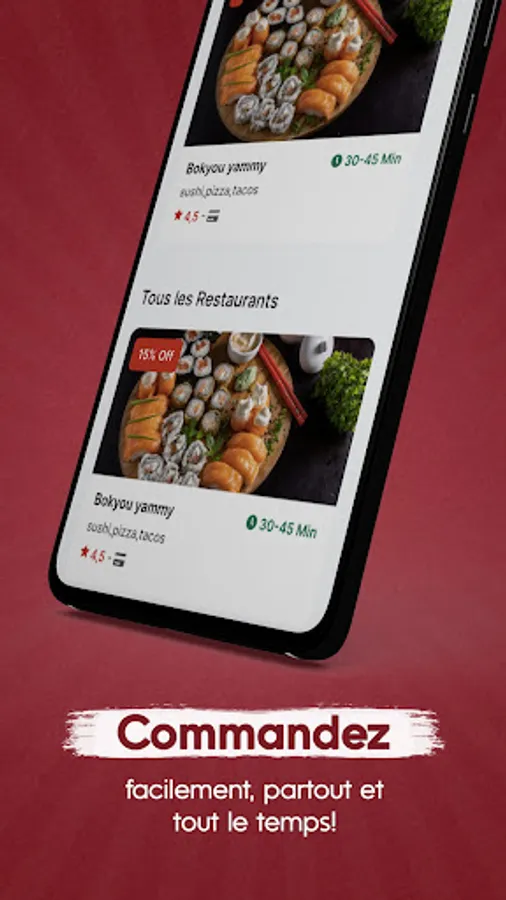 What would you like to eat? Vegetarian, burger, sushi, kebab, tacos, pizza or pasta, our application allows you to order the best meals in all the restaurants or fast food restaurants in your city.