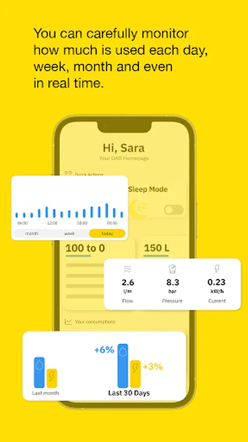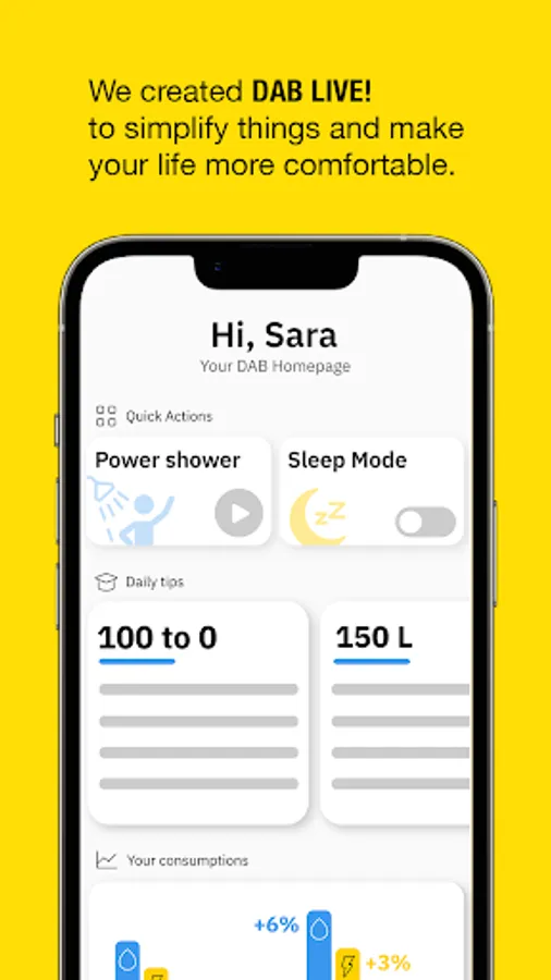 DAB Live! gives you full visibility on your water consumptions and let you notice any anomalous use of water to avoid wasting precious resources. Accept the tips that help you create good habits and take advantage on the functions to use water more sustainably while saving.