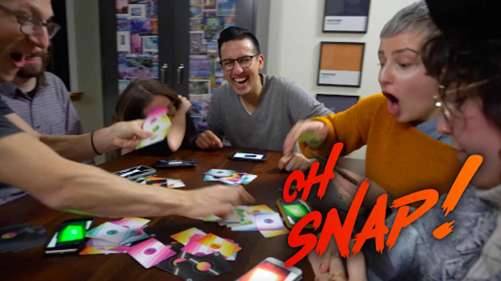 The app is there to tell you when to play, give you random challenges, and generally make your life a panic-inducing nightmare (in a fun way!). The app will randomly assign turn order and occasionally force all players to compete in quick, frantic mini-games on the device — often when they least expect it.