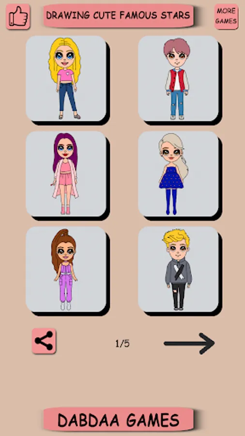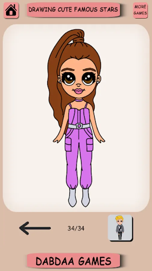 In this version of game there you will learn to draw 22 different famous celebrity.