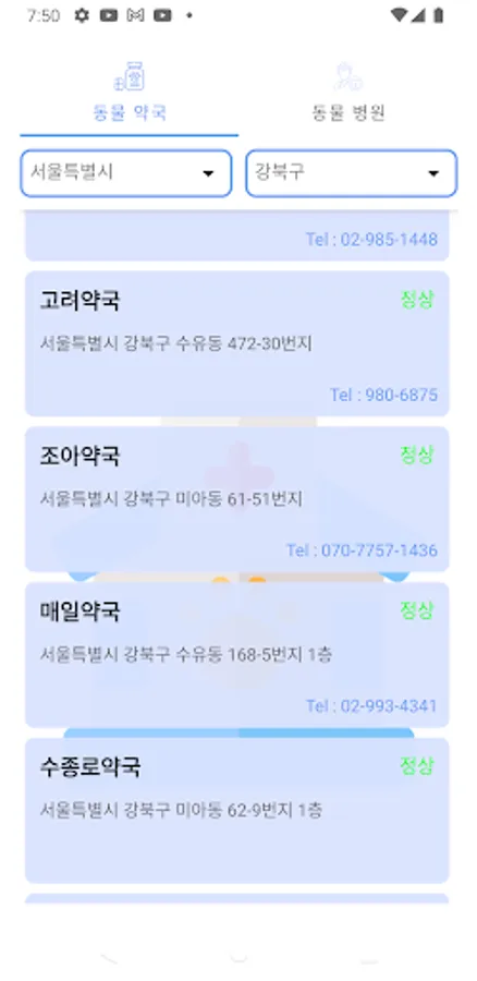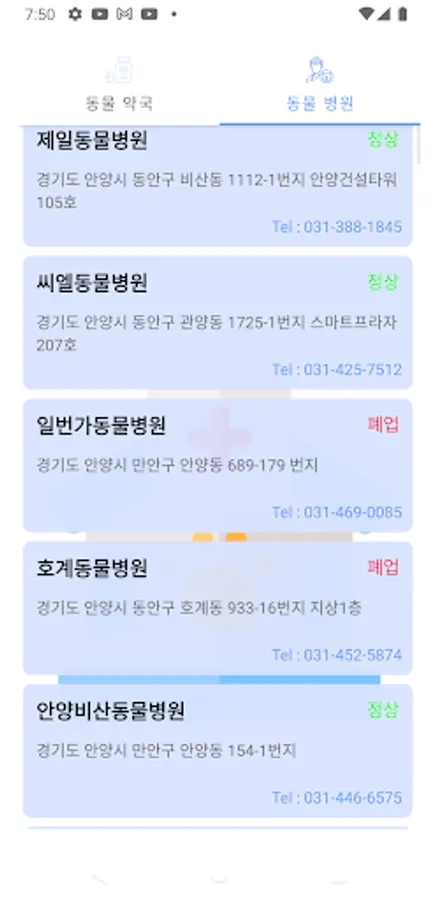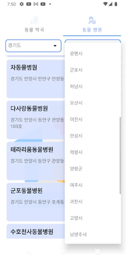 App to find veterinary pharmacies and veterinary hospitals in Seoul and Gyeonggi-do