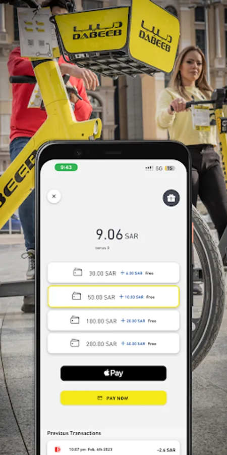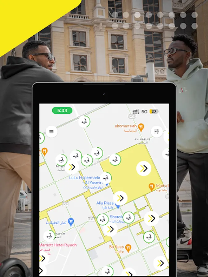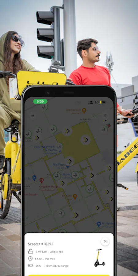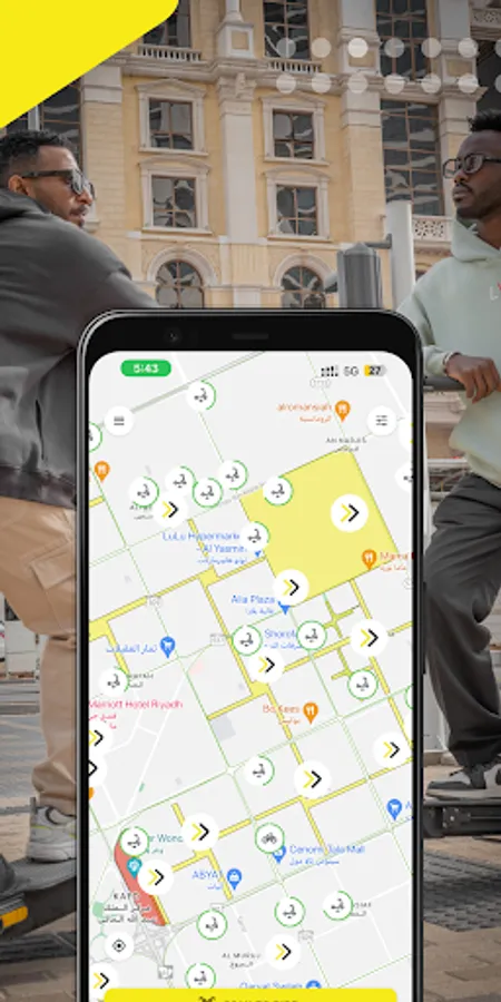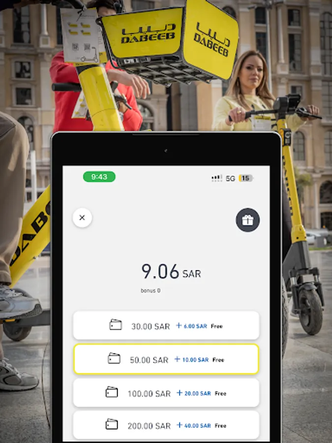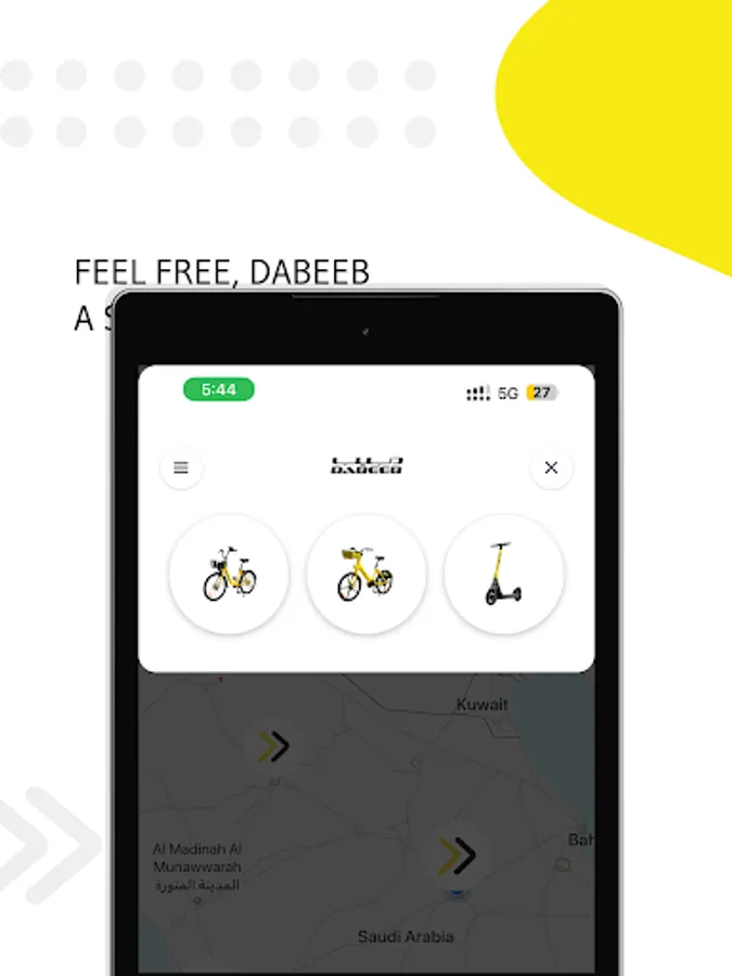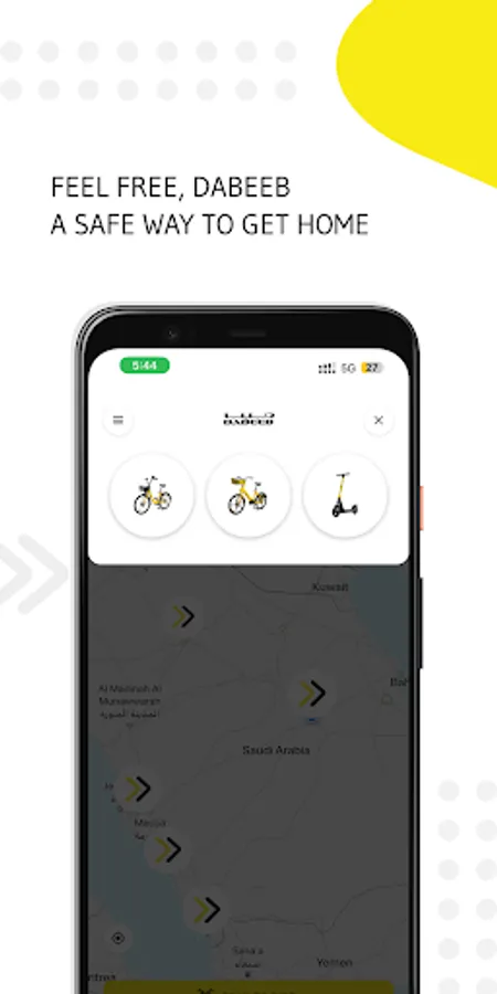 - Open the app to find a nearby Dabeeb (electric scooter), on the map- Unlock your ride by scanning the QR code or entering the ID