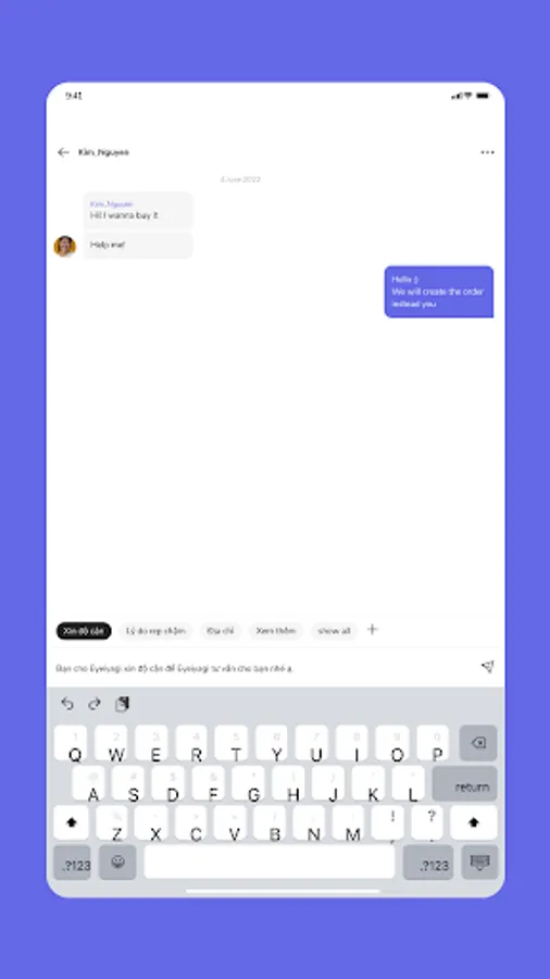 - Support to interact with customers flexibly with quick chat templates to save time.