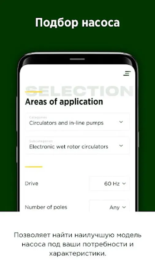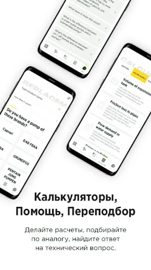 Thanks to our calculators in the mobile application, you can calculate on the fly, for example: the required head and (or) flow rate, the number of radiators in the system, the volume of the accumulator and other parameters. Simple, convenient and always at hand!