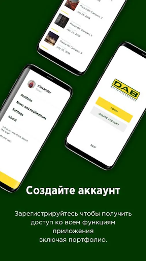 If you are a member of the DAB Bonus program, our mobile application allows you to upload photos of works and projects made using DAB equipment and receive bonuses for this. You can also control your bonus balance and withdraw the accumulated points in a convenient way.
