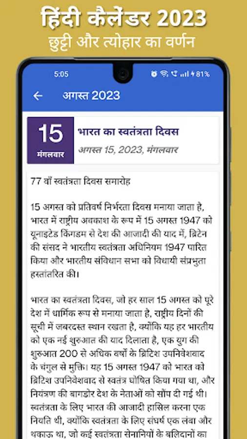 Calendar 2023 with Information like Holidays, Festivals and many more...