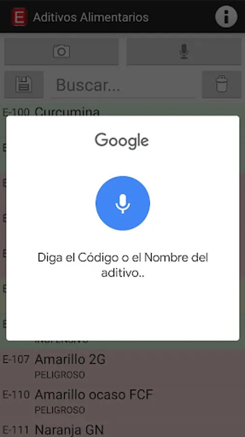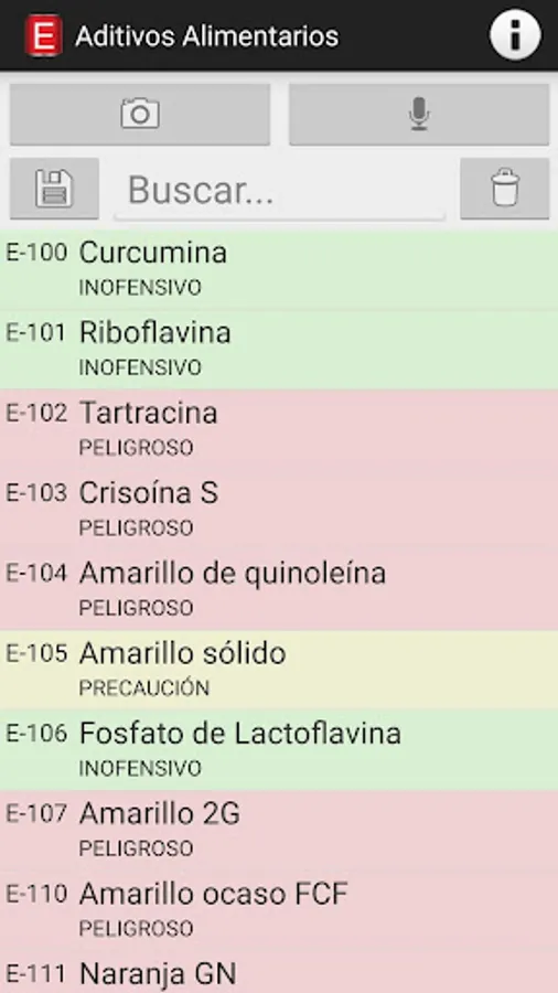 • Search additives by number or name, with voice recognition or with your mobile camera