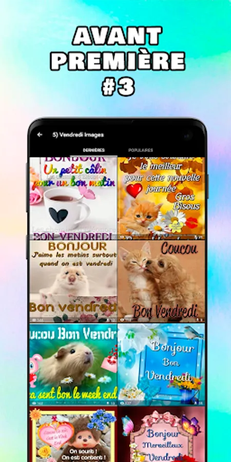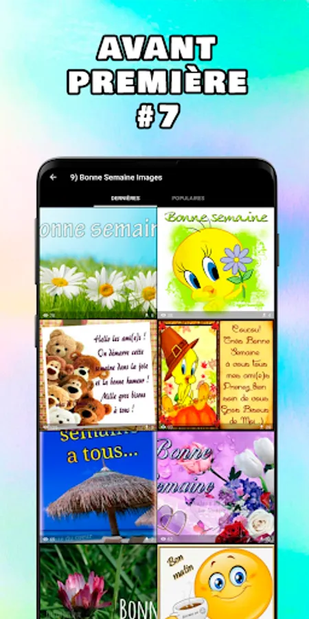 You can browse the different categories based on the days of the week. Once you find the perfect image, all you have to do is download it to your device and share it with your friends, family or on your favorite social networks.