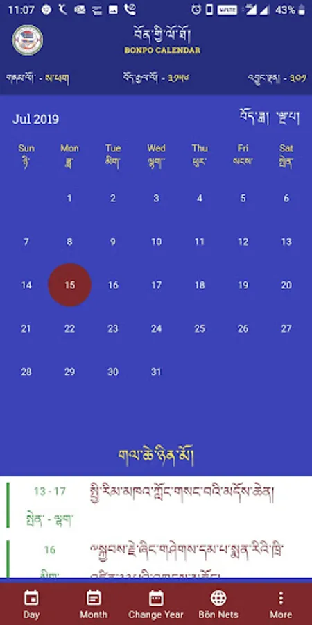 Tibetan Calendar is a special calendar that allows you see both the Tibetan and Solar calendar.