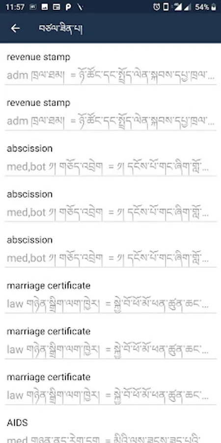 English - Tibetan Dictionary with favourites and most recent search saved for easy access.